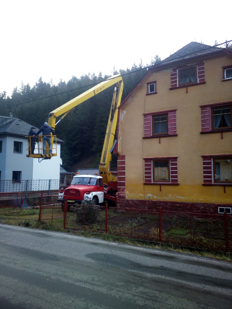 Oprava střešní krytiny pomocí autoplošiny, Trutnov